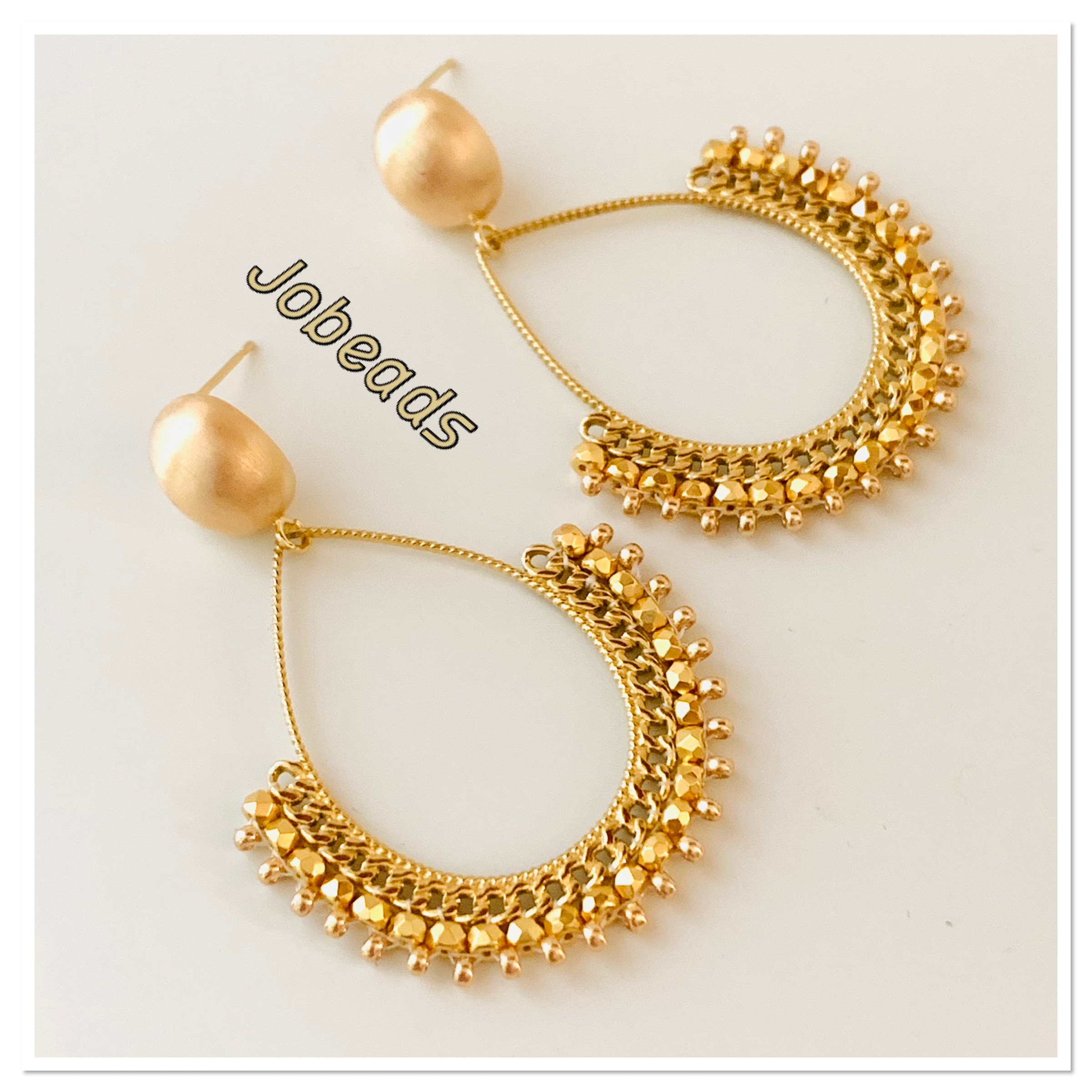 Handgemaakte Druppels met microspacers en mat gouden oorstekers
